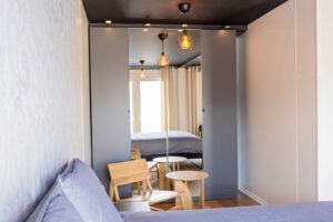 De kleinste woonunit heeft een afmeting van 6m x 3m en is uitgerust met een ruim bed van 1,4m x 2m, eigen toilet en douche.
